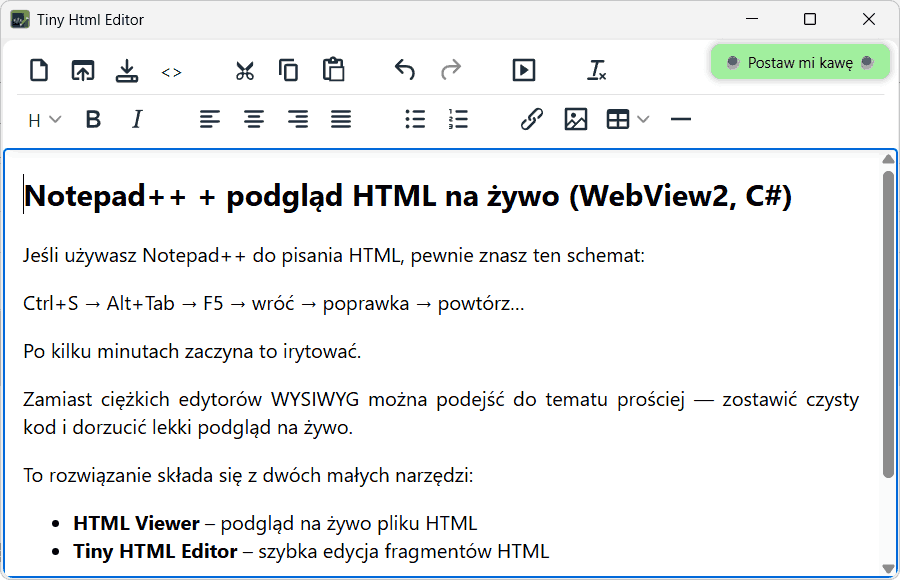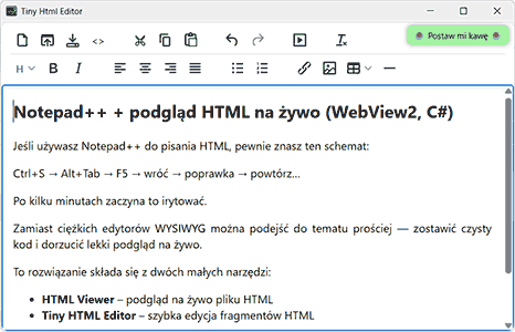- Tiny HTML Editor – szybka edycja fragmentów HTML