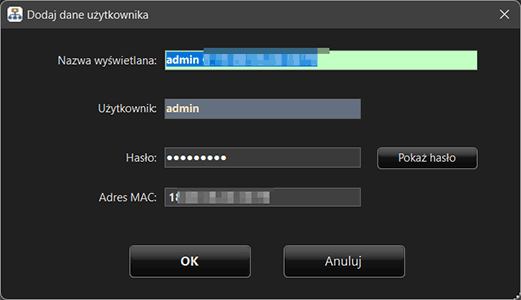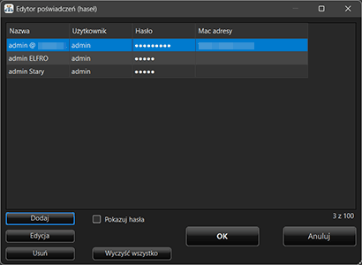 Poświadczenia w programie są przypisywane do konkretnego urządzenia na podstawie jego adresu MAC.