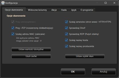 - wykrywanie urządzeń przez Ping oraz Ping TCP