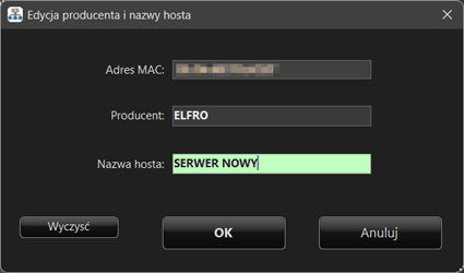 - identyfikacja producenta na podstawie adresu MAC