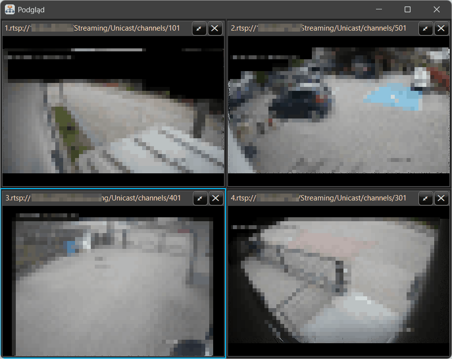 - wyświetlenia dostępnych strumieni wideo.