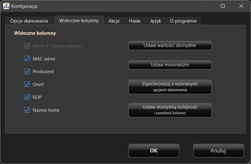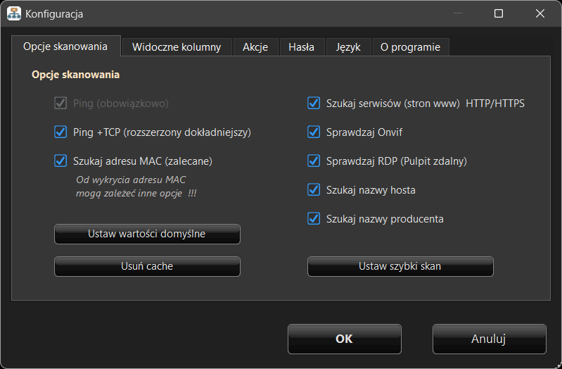 Domyślnie program wykonuje kompleksowe skanowanie sieci, obejmujące: