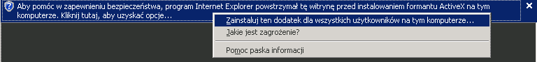 Po uruchomieniu strony z zainstalowanymi dodatkami na dole ekranu może pojawić się okienko: